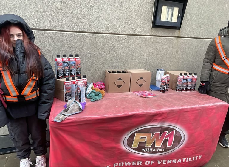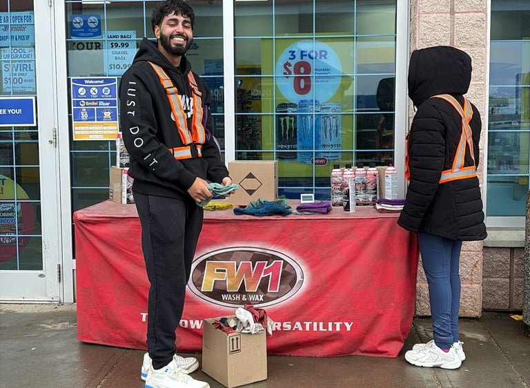 A high-energy look at our field marketing teams in action across various locations, including West Edmonton Mall, South Common, and Beaumont. Our representatives are out in the community, showcasing the power of FW1 Wash & Wax and engaging with customers.